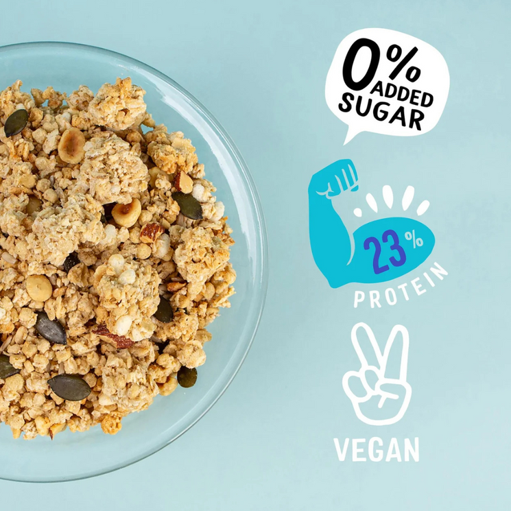 This crunchy granola is loaded with plant-based protein and fibre to give you a nutrient-rich start to the day. Featuring wholegrain oats, sunflower and pumpkin seeds, and a blend of almonds and hazelnuts, it’s naturally delicious and satisfying.