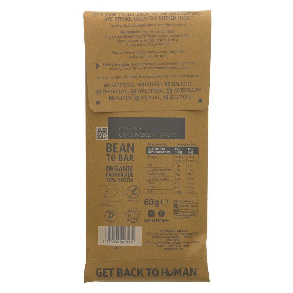 Hu’s Crunchy Mint Dark Chocolate Bar is a refreshing twist on classic dark chocolate. Made with rich Fairtrade cacao, unrefined coconut sugar, and smooth cocoa butter, it’s lifted with a touch of peppermint oil and added crunch from cacao nibs.