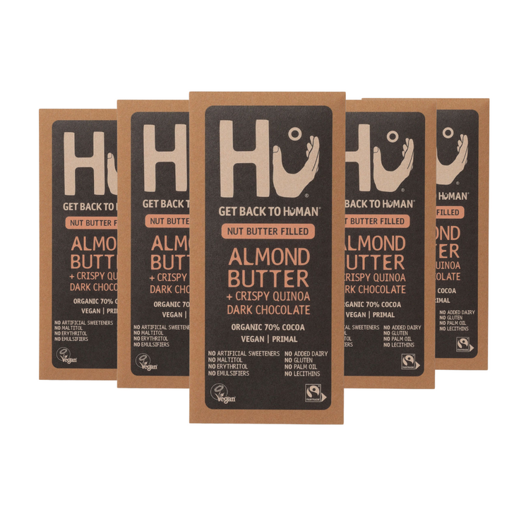 Hu’s Almond Butter & Quinoa Dark Chocolate Bar is a wholesome take on indulgence. Creamy almond butter pairs with rich organic dark chocolate and light, puffed quinoa for crunch. Sweetened only with organic coconut sugar, it’s proof that chocolate can be both delicious and mindful.