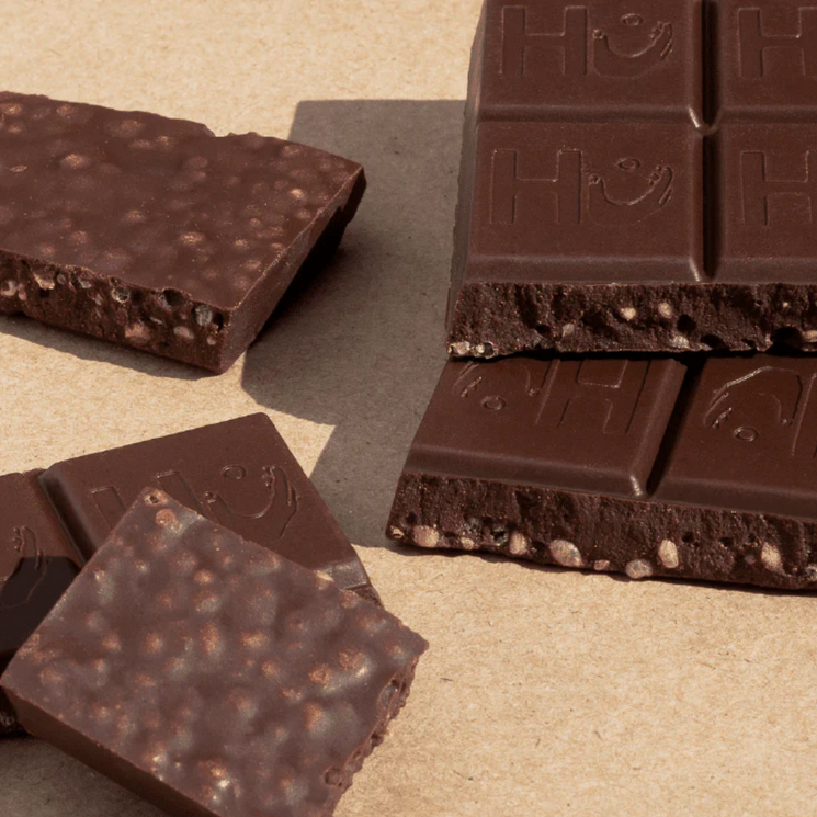 Creamy, deep dark chocolate paired with a subtle sweetness of vanilla and the airy crunch of puffed quinoa this bar is as satisfying as it is nourishing. A luxurious yet mindful treat made for those who love both flavour and integrity in their chocolate.