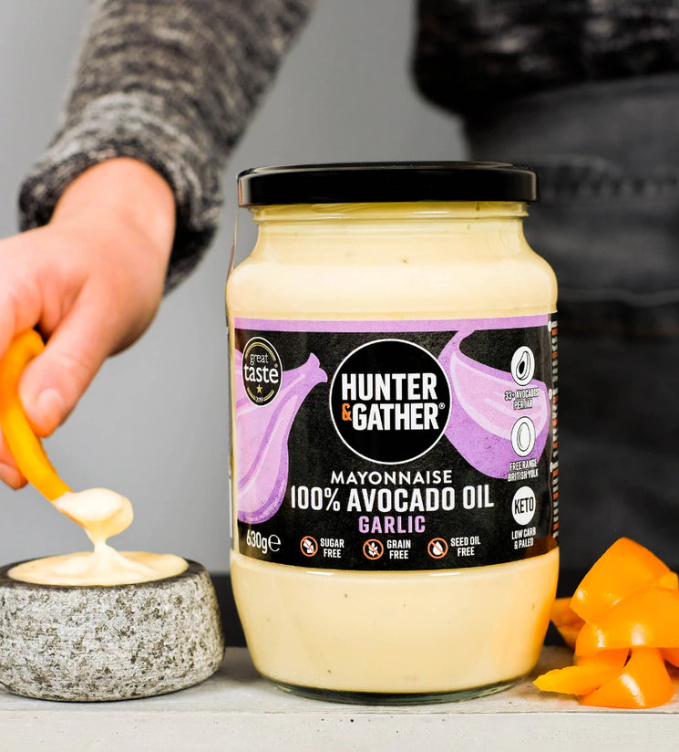 Hunter & Gather’s Avocado Oil Mayonnaise Garlic is an indulgent yet clean twist on a classic condiment. Combining silky avocado oil with British free range egg yolk, aromatic garlic and a dash of seasoning, it delivers a creamy richness without compromise. Sugar free, gluten free and seed oil free, it’s a smart swap for anyone looking to upgrade everyday meals with healthier, better quality ingredients. Smooth, versatile, and nourishing, it’s ideal for pairing with salads, burgers, roasted vegetables or dipping your favourite snacks.