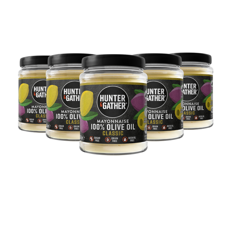 Hunter & Gather Classic Olive Oil Mayonnaise is a simple, nutrient dense twist on a household staple. Made with 100% olive oil, British free range egg yolk, and a touch of apple cider vinegar and pink Himalayan salt, it delivers a clean, creamy texture with a subtle tang.