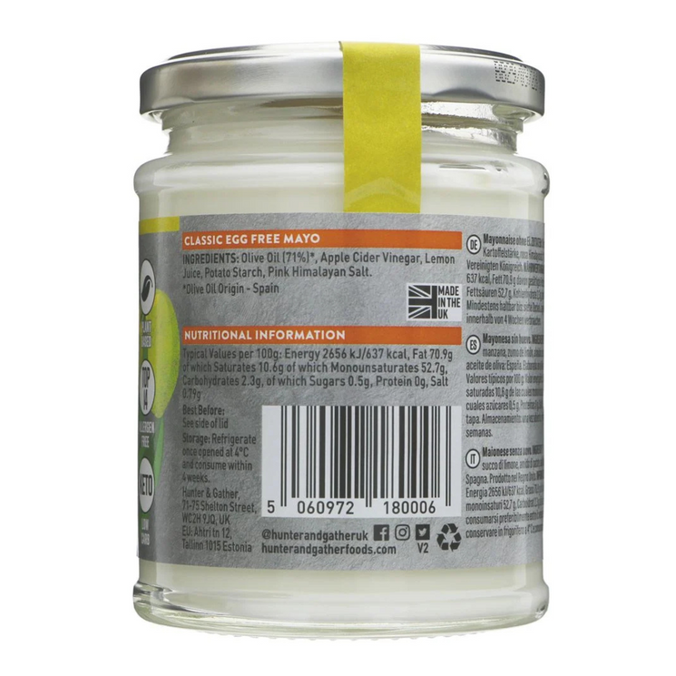 Hunter & Gather Egg Free Classic Olive Oil Mayo 250g
