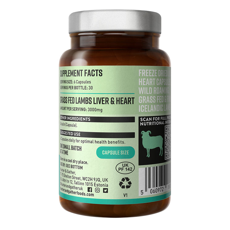 Support your health naturally with this premium supplement made from 100% grass fed Icelandic lamb liver and heart. Each capsule delivers a potent blend of essential vitamins and minerals, including Vitamin A, B12 and iron, to help energy, immunity and overall vitality. Completely free from fillers and artificial additives, these capsules are an easy way to get nutrient-dense organ meats into your diet.