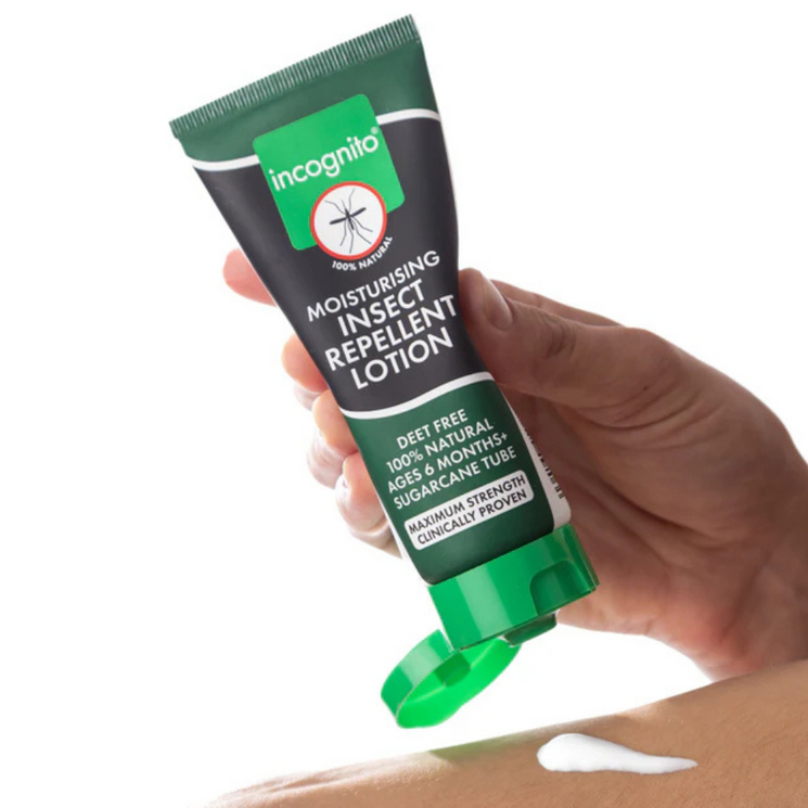 Protect your skin naturally with this expertly formulated insect repellent lotion from Incognito. Using a unique blend of PMD-rich botanic oil, organic aloe vera, vitamin E, and pure essential oils, this lotion creates a barrier against mosquitoes and other biting insects without the use of harsh chemicals. The light, fast-absorbing formula is perfect for all skin types and suitable for use on exposed areas when enjoying the outdoors.