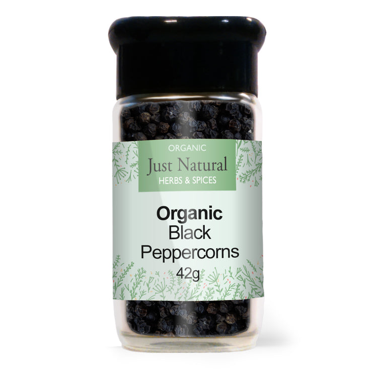 Just Natural Organic Peppercorns Black Glass Jar 42g