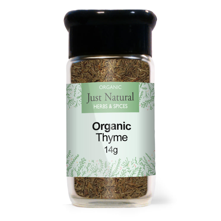 Just Natural Organic Thyme is a fragrant herb with earthy, slightly minty notes that enhance a wide variety of dishes. Perfect for seasoning chicken, fish, roasted vegetables and Mediterranean style meals, it’s a versatile staple for everyday cooking. Carefully sourced from organic farms and sustainably packed, this thyme offers both quality and freshness in an eco friendly jar.