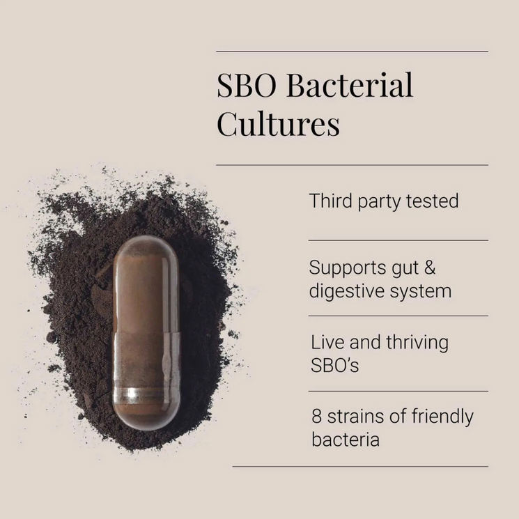 KIKI Health Body Biotics™ is an advanced probiotic formula containing 8 strains of naturally effective soil based organisms (SBOs). Unlike regular probiotics, these bacteria remain dormant until activated by fluid in the digestive tract, where they awaken, multiply, and begin restoring balance in the gut microbiome.