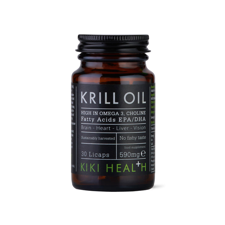 KIKI Health Krill Oil is a concentrated supplement made from Euphausia superba, harvested sustainably in the clean Antarctic seas. Encapsulated using advanced Licaps® technology, these softgels ensure faster product release and improved absorption, without the reflux or fishy burps often associated with fish oils.