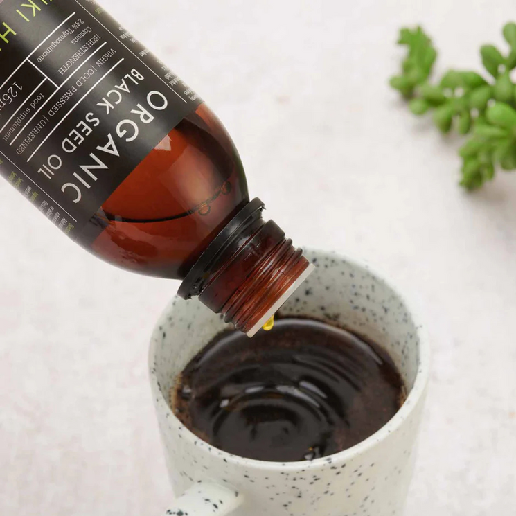 KIKI Health Organic Black Seed Oil is made from premium Nigella sativa seeds grown in nutrient rich, organic soil, free from pesticides and synthetic fertilisers. The seeds are cold pressed using first pressing techniques to preserve the full spectrum of nutrients without heat or solvents.