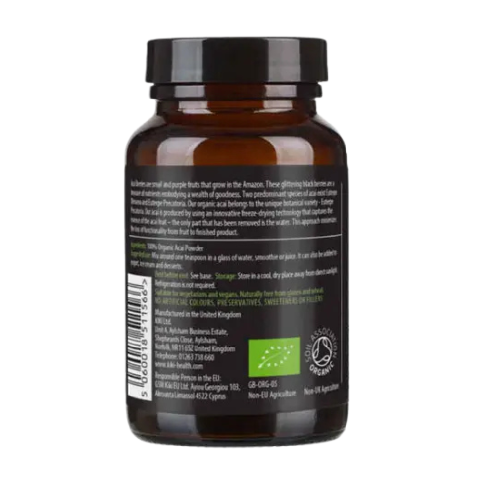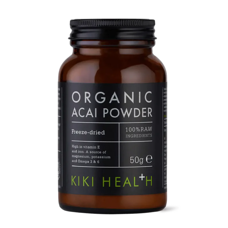 KIKI’s Acai Powder is made from raw, organically grown acai berries, harvested by hand from tall palm trees in the Amazon rainforest. Traditionally valued for their nutrient density, the berries are freeze dried to protect their natural antioxidants, omegas and fibre. With a slightly earthy, berry like taste, this versatile powder can be added to smoothies, yoghurts or energy bars for a boost of plant-based goodness.