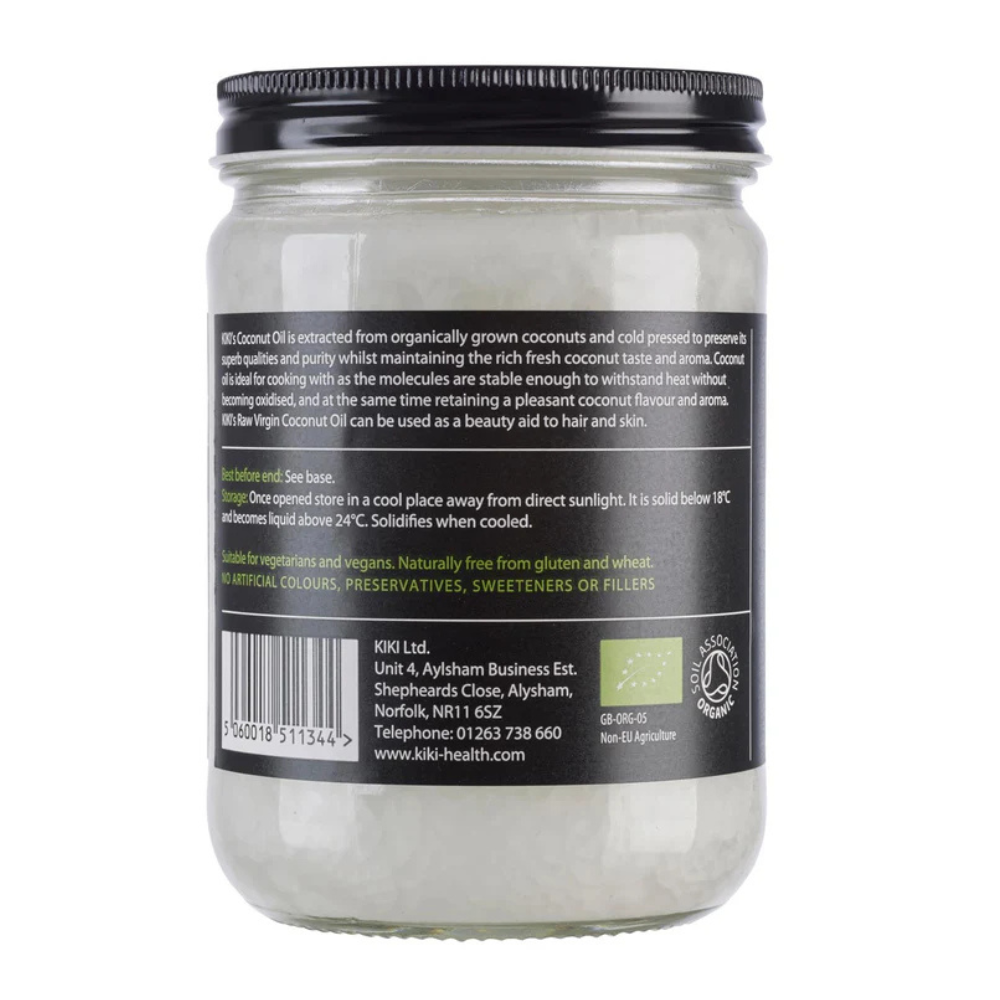 Kiki Organic Coconut Oil is a premium, raw, cold-pressed oil extracted from fresh organic coconut flesh. It's unrefined and carefully pressed to preserve its naturally smooth texture, mild coconut aroma and high nutritional content.
