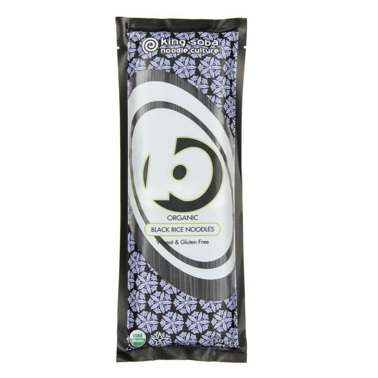 King Soba Organic Black Rice Noodles are a delicious and nutrient dense alternative to conventional pasta and wheat-based noodles. Made with a blend of organic black rice and brown rice, these noodles cook into a striking deep purple hue with a subtle nutty flavour, adding both beauty and nourishment to your meals.