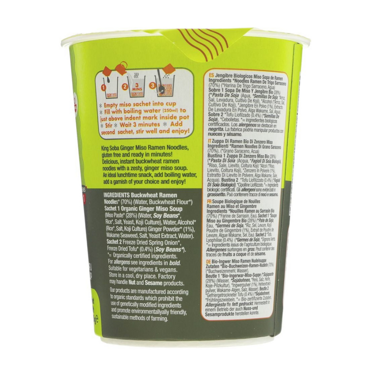 King Soba Organic Ginger Miso Ramen Noodle Cup 85g