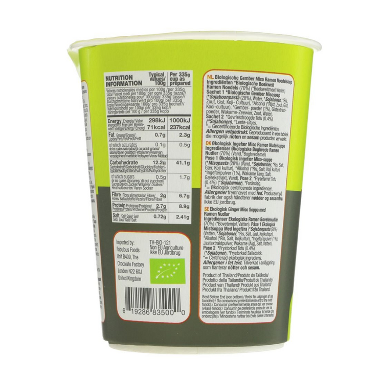 The miso paste provides rich umami depth, while ginger adds a zesty warmth and wakame seaweed offers a subtle oceanic note. Finished with spring onions and tofu for extra texture and protein, this ramen cup is naturally gluten free, organic, and plant-based. A comforting and healthy choice whenever you’re short on time.