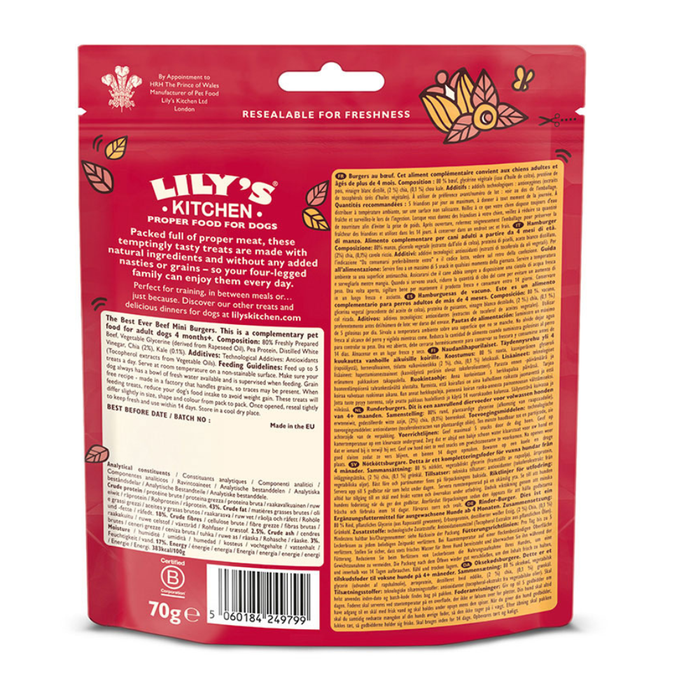 Lilys Kitchen Best Ever Mini Beef Burgers For Dogs 70g