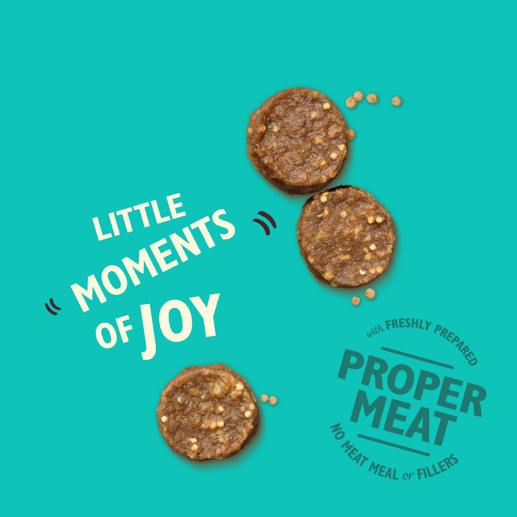 Made with freshly prepared chicken and natural ingredients, these treats are both nourishing and delicious. Grain free, with added quinoa and ginger, they’re a healthier choice for everyday rewards. Plus, the packaging is designed to be recyclable, making it better for the planet too.