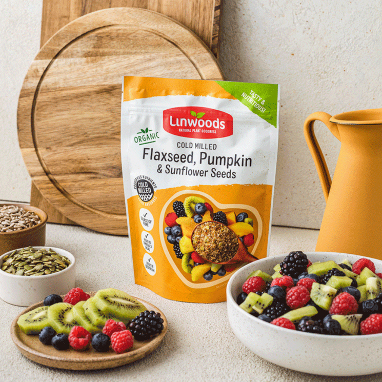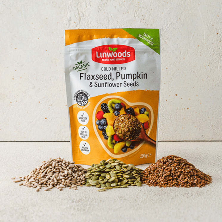 Linwoods Flaxseed, Sunflower & Pumpkin is a nutrient-rich blend of three powerhouse seeds, cold milled to make their benefits more easily absorbed by the body. Flaxseed provides Omega-3 fatty acids and fibre, while pumpkin and sunflower seeds add protein, vitamin E, magnesium, and zinc.