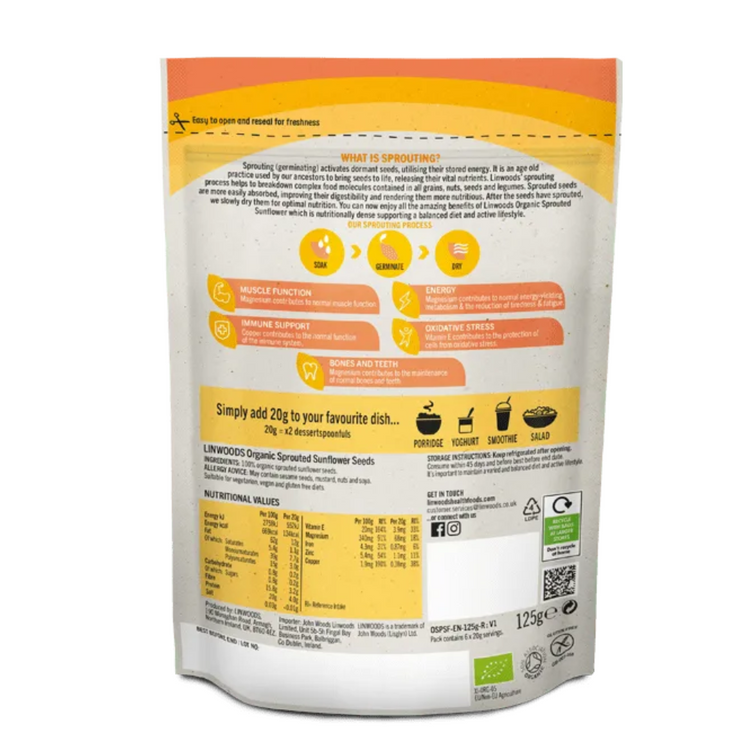 Linwoods Sprouted Sunflower Seeds offer a nutritious twist on a classic seed. The sprouting process helps activate enzymes and improve nutrient absorption, making them easier for the body to digest while boosting their natural benefits.