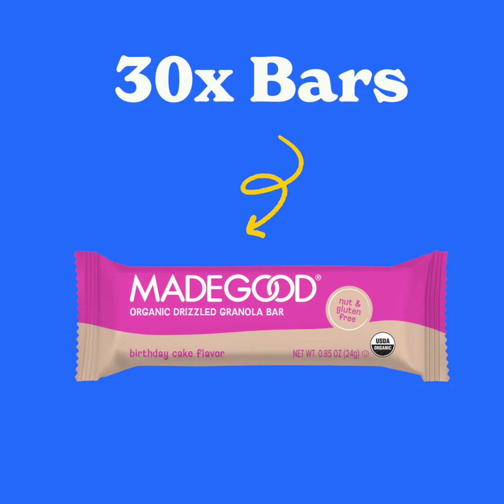 Packed with organic oats and hidden veggie nutrients, these bars prove that fun can be functional. MadeGood’s allergy friendly promise means they’re safe for school snacks while still delivering an indulgent birthday cake taste.