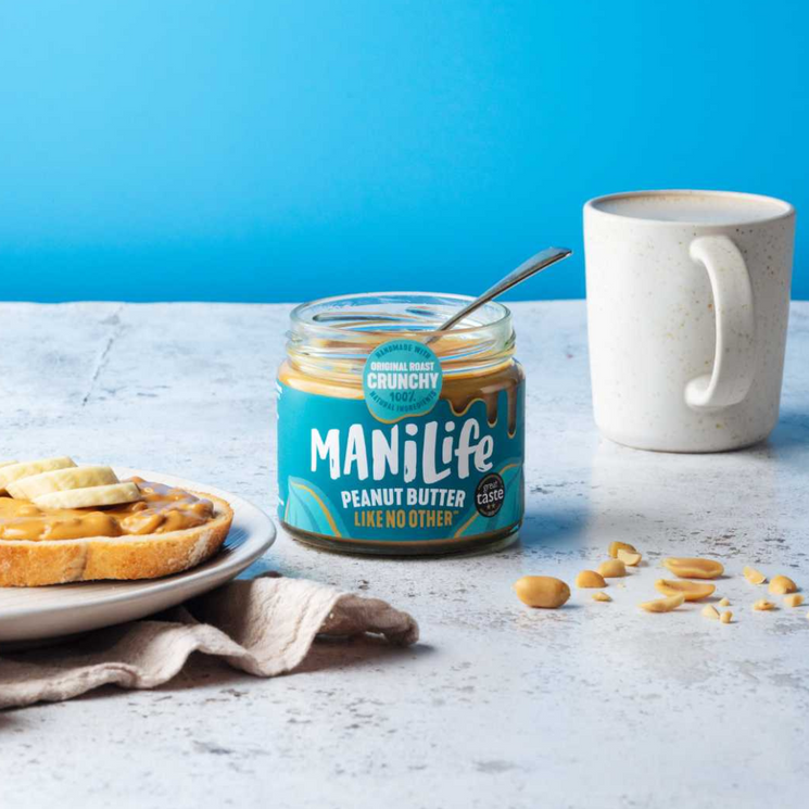 ManiLife Original Roast Crunchy Peanut Butter is a true staple for nut butter lovers. Crafted from hi-oleic peanuts sourced from trusted family run farms in Argentina, these nuts are carefully roasted and blended in small batches to create the perfect balance of creamy spread with crunchy texture. Naturally delicious and versatile, it’s the ideal addition to porridge, toast, smoothies, or enjoyed straight from the jar.