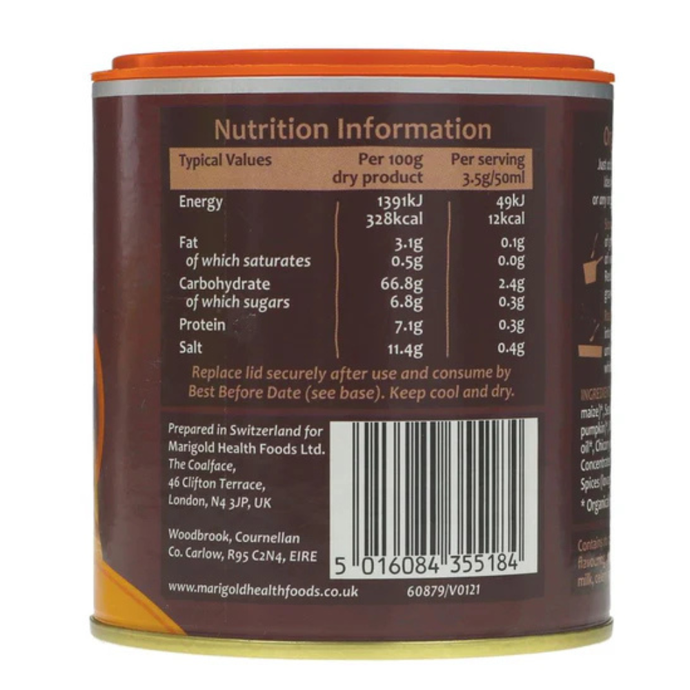 Marigold Organic Gravy Powder is a wholesome and convenient way to add depth and richness to your meals. Made with organic corn starch, rice flour and a blend of vegetables, chicory and mushroom, it delivers a naturally savoury taste in minutes.