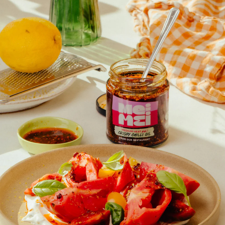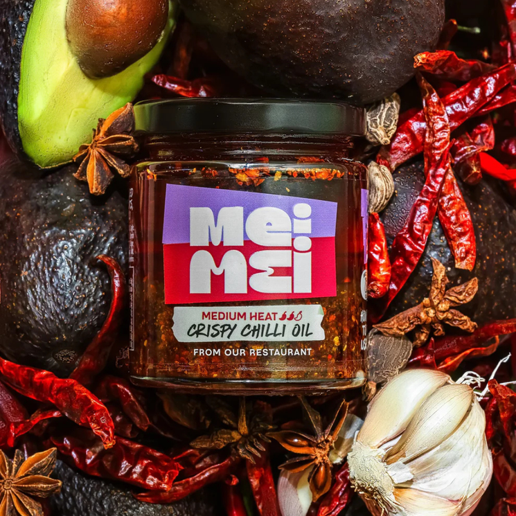Mei Mei Crispy Chilli Oil is a bold, crunchy chilli oil designed to bring instant flavour and texture to everyday dishes. Golden garlic and shallots are gently cooked in avocado oil alongside fragrant roasted spices and chillies, creating a rich, savoury oil packed with warmth and crunch. Instead of artificial flavour enhancers, this recipe builds natural depth with mushroom powder and carefully toasted spices. The result is a fiery yet balanced chilli oil that works beautifully as a finishing drizzle over noodles, eggs, rice or pizza. Whether stirred through stir fries or spooned over simple dishes, it delivers a punchy finishing touch that transforms the everyday into something memorable.