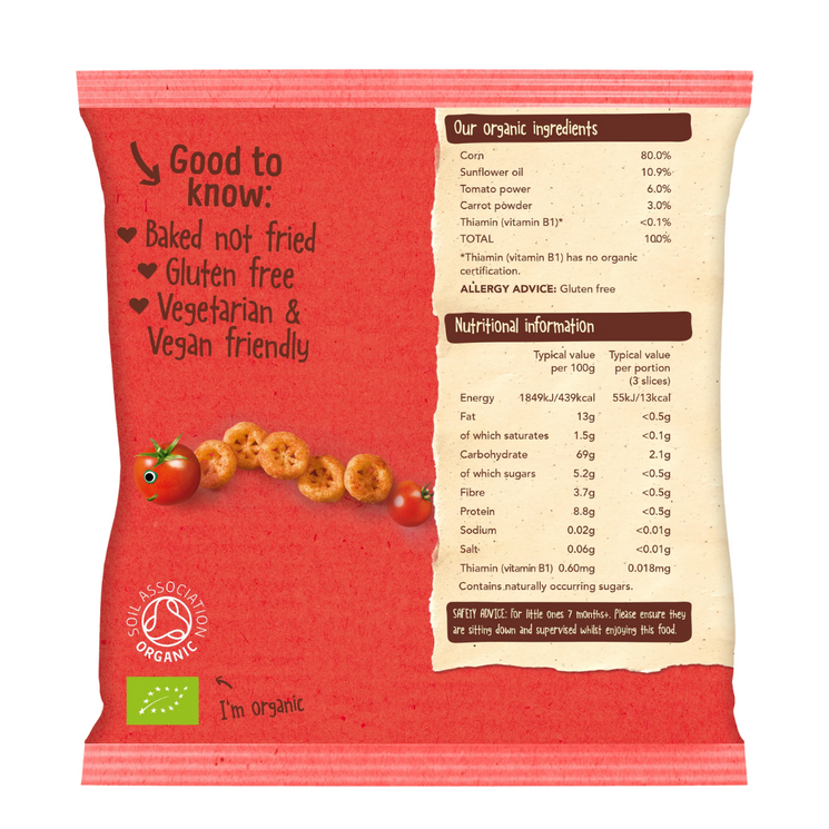 Designed for little hands and developing tastes, these melty tomato slices are a gentle, safe snack for your baby’s first food adventures. With only a few organic ingredients and no added nasties, they offer a naturally tasty option for independent nibbling.