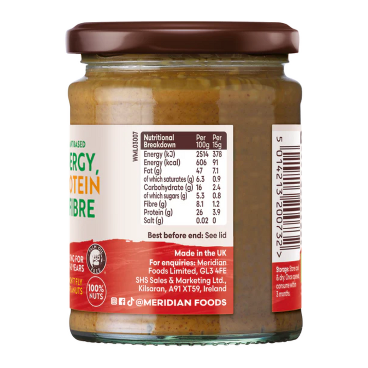 Meridian Organic Crunchy Peanut Butter is a simple and wholesome spread, crafted using nothing but organically roasted peanuts with their skins left on for extra flavour and nutrition. With no added sugar, salt, or palm oil, this peanut butter is as natural as it gets.