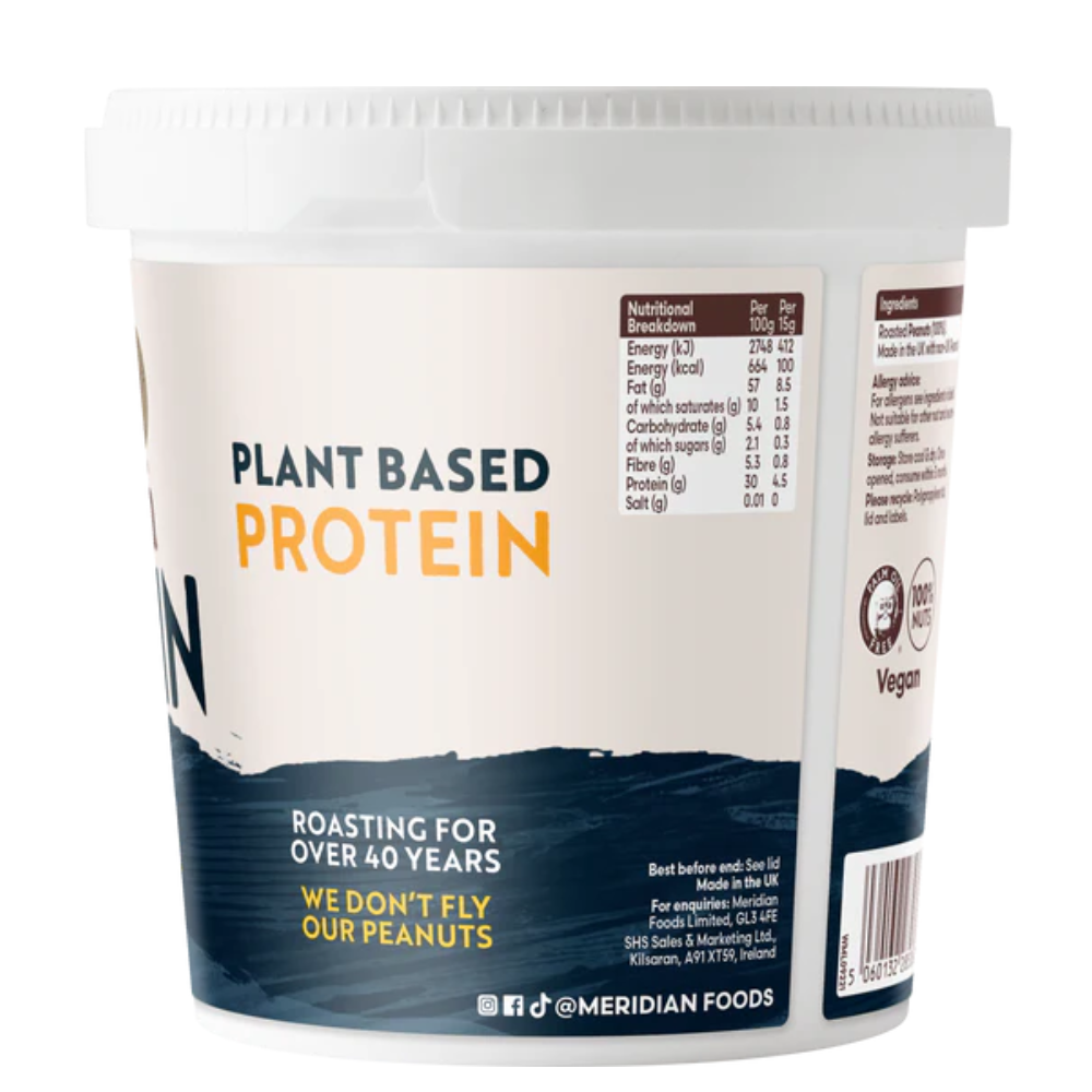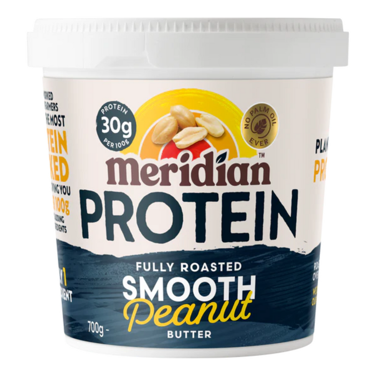 Meridian Protein Smooth Peanut Butter is crafted from carefully selected protein-rich peanuts, roasted in their natural skins and ground to a silky smooth finish. With no palm oil, added sugar, or artificial ingredients, it’s a pure, wholesome nut butter designed to fuel your day.