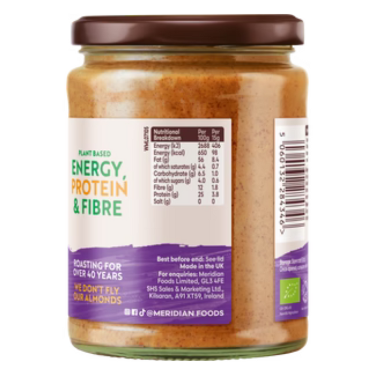 Meridian’s smooth almond butter is made with just one ingredient: roasted whole almonds with their skins on. With its silky texture and naturally sweet, nutty flavour, it’s the perfect choice for anyone looking for clean, nutritious spreads. Rich in healthy fats, fibre, and protein, it’s a powerhouse for toast, porridge, smoothies or baking.
