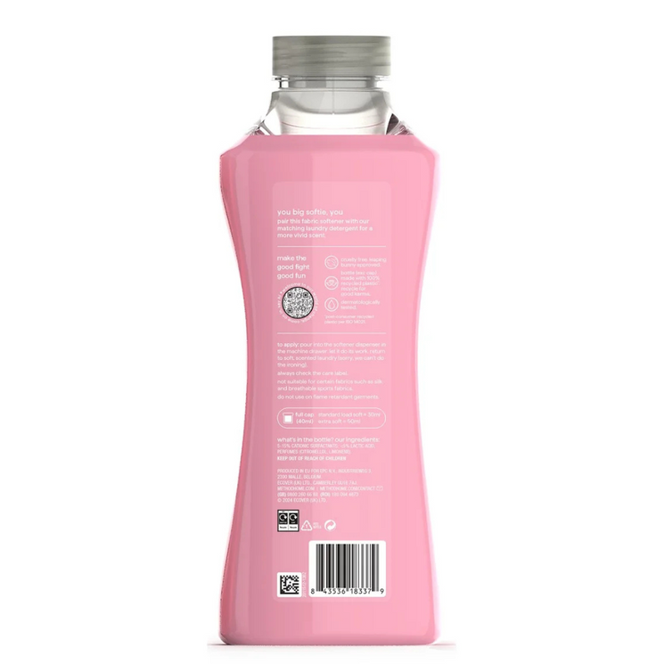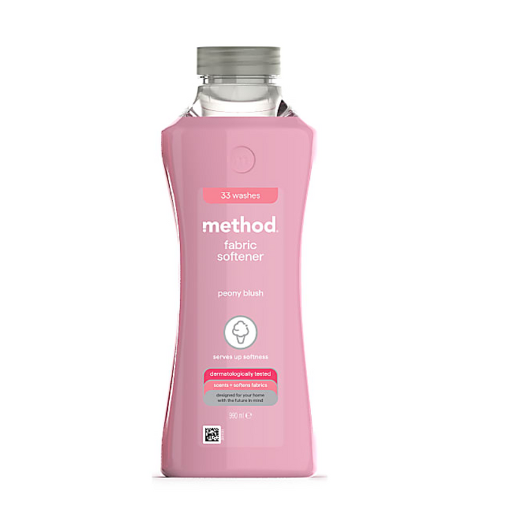 Method's Peony Blush Fabric Softener brings a breath of fresh air to your laundry routine. Powered by plant-based ingredients and designed for modern living, this gentle softener delivers effective results with a beautifully light floral scent.