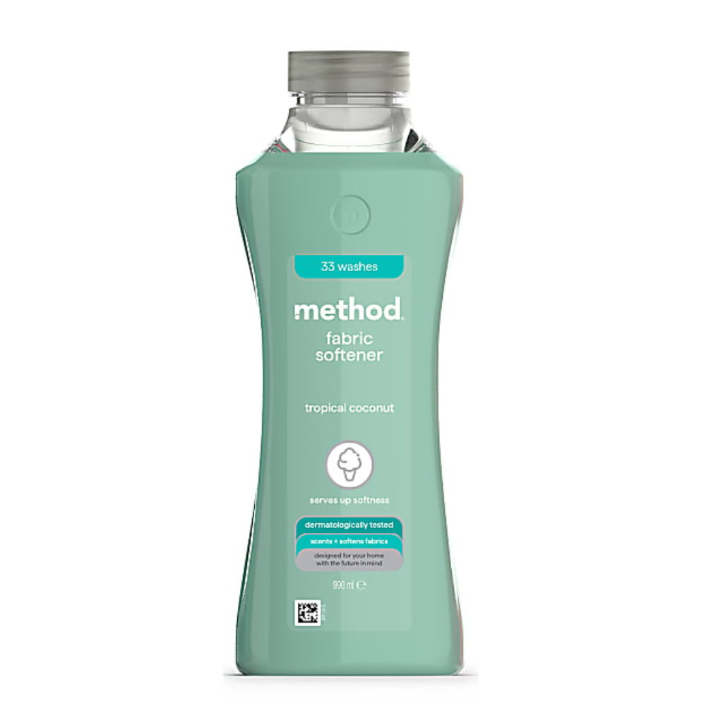 Method’s Tropical Coconut Fabric Softener brings sunshine to your laundry routine. Powered by biodegradable softeners derived from rapeseed oil, it leaves your clothes feeling soft and infused with a warm, tropical scent that lingers long after the spin cycle.