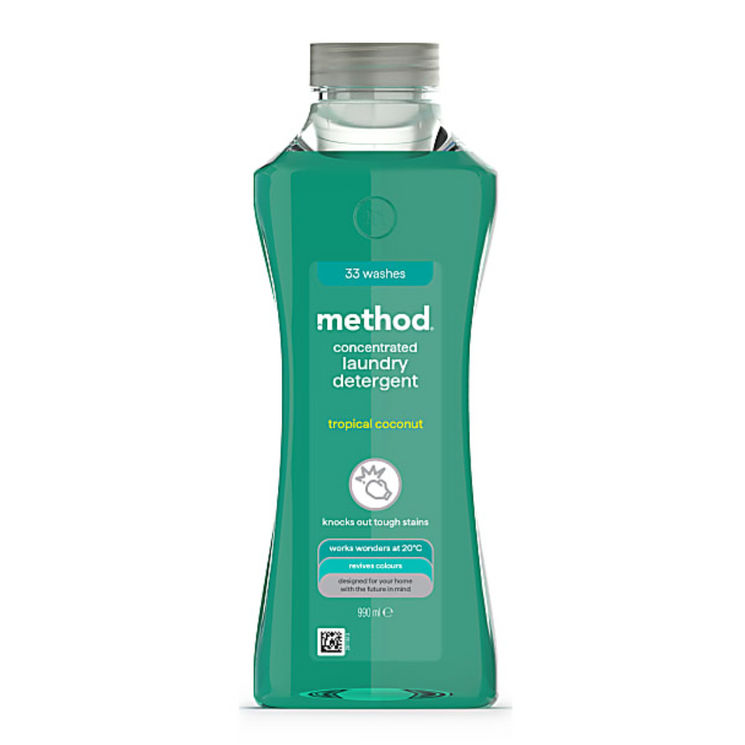 Method’s Tropical Coconut Laundry Liquid transforms laundry day into a moment of bliss. This plant-powered detergent is designed to fight stains, freshen fabrics and leave clothes wrapped in the soft scent of sun-kissed coconut.