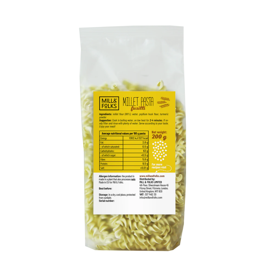 Made from 88% millet flour with a touch of turmeric for natural colour