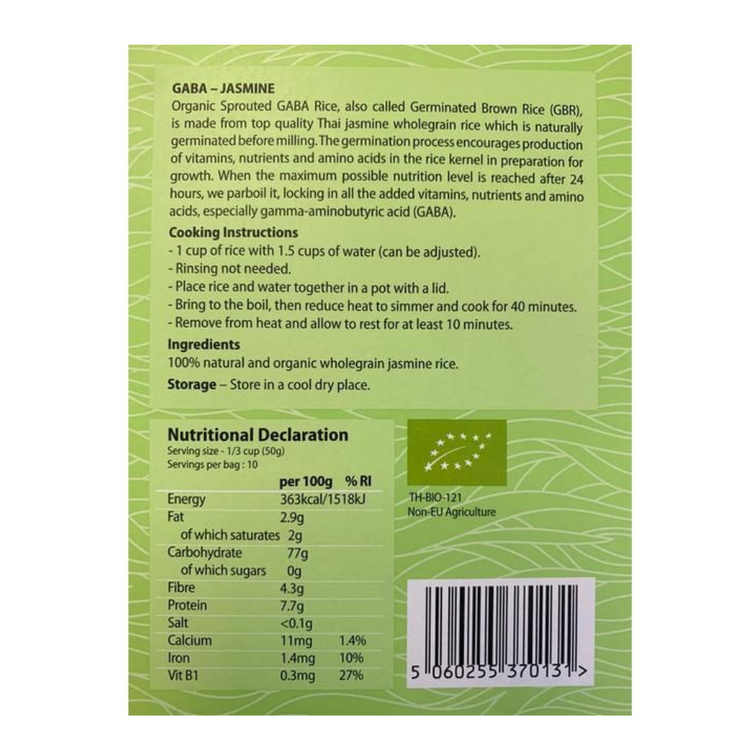 Minvita GABA Organic Sprouted Jasmine Rice also known as Germinated Brown Rice (GBR) is made using premium Thai jasmine rice. Through a natural germination process, the rice kernel develops higher levels of vitamins, nutrients, and amino acids, including gamma-aminobutyric acid (GABA), a compound linked with relaxation and brain health.