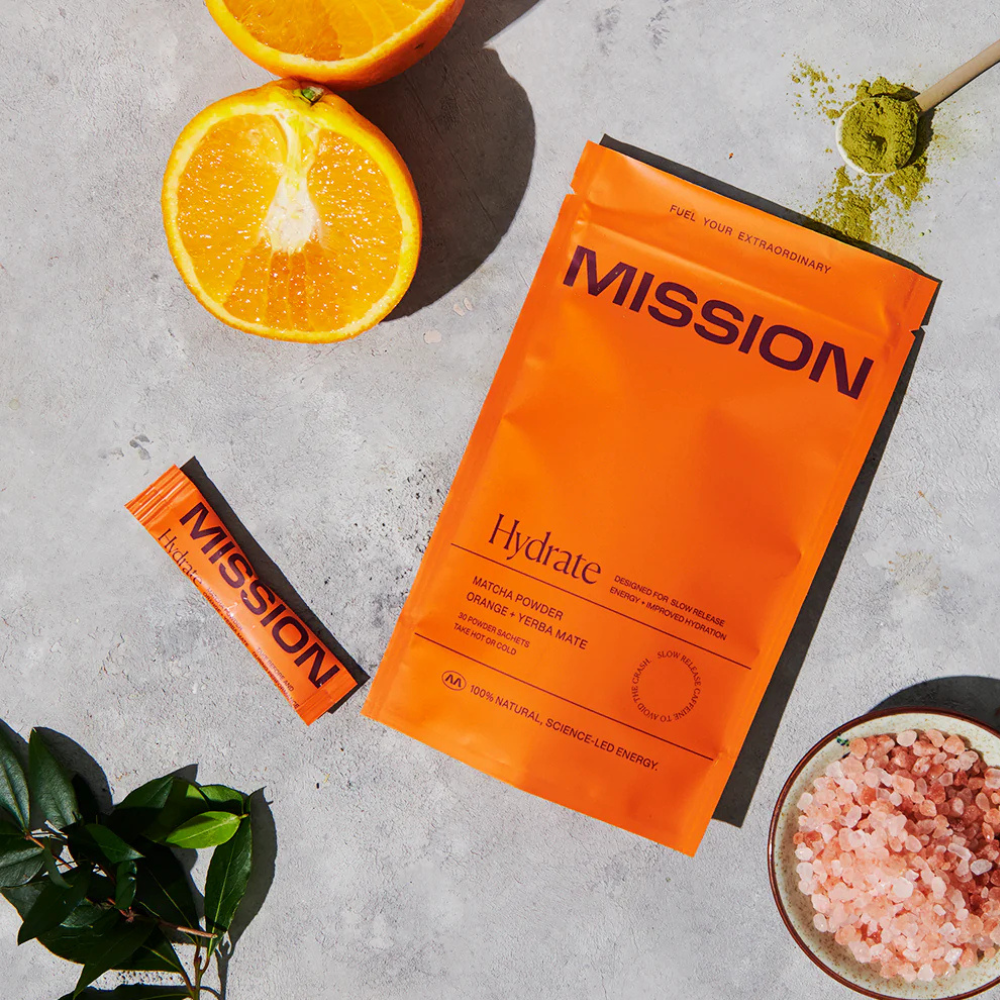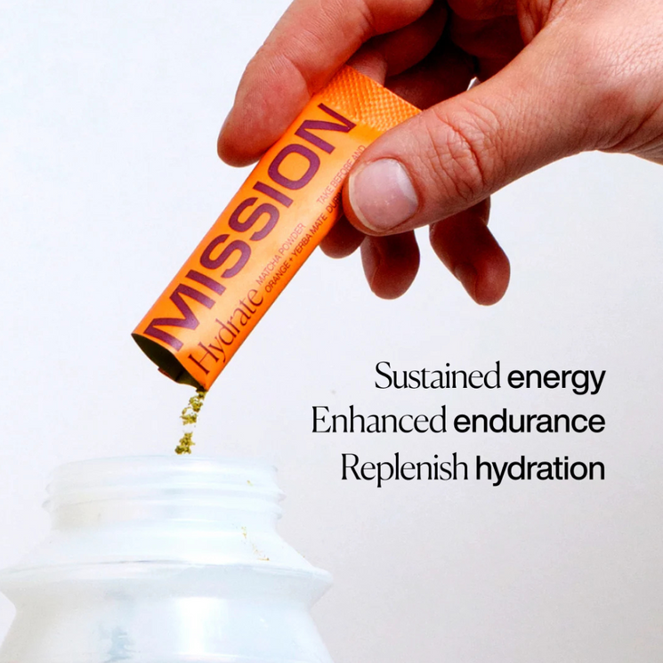 MISSION Hydrate Matcha is a carefully crafted blend that combines the clean energy of matcha and yerba maté with the natural hydration benefits of baobab. Baobab fruit pulp provides electrolytes and immune supporting vitamins, while maca, cinnamon, and liquorice root contribute depth of flavour and extra wellbeing benefits.