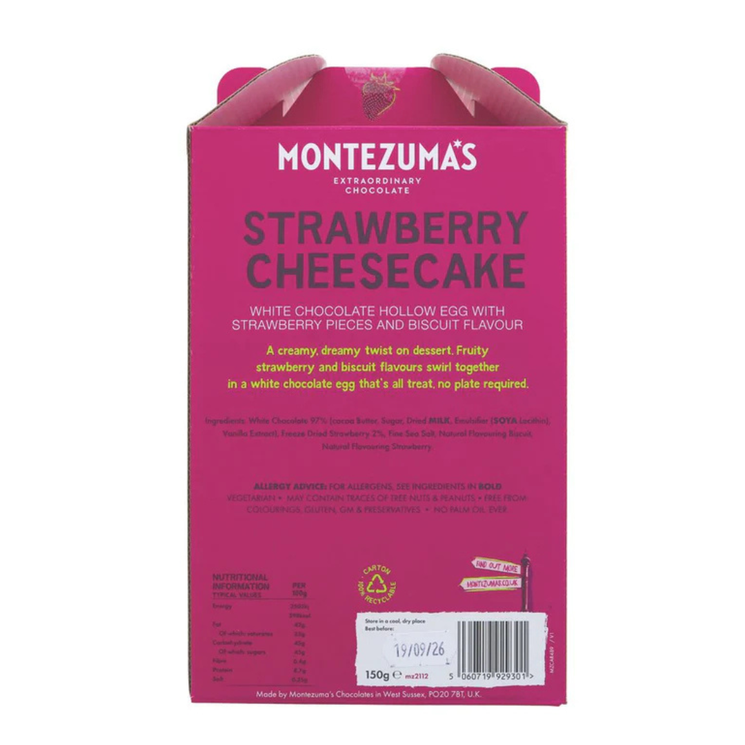 Montezuma’s White Chocolate Hollow Egg with Strawberry & Biscuit brings together creamy white chocolate with fruity strawberry pieces and a sweet biscuit inspired flavour. The smooth chocolate shell melts beautifully, while the strawberry adds a gentle fruity lift that balances the richness of the white chocolate. Perfect as a seasonal treat or thoughtful gift, this hollow egg delivers a playful twist on a classic dessert combination. Its creamy texture and fruity sweetness make it a delightful chocolate to enjoy on its own or share with family and friends.