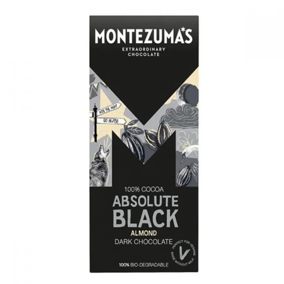 Montezuma's Absolute Black 100% Chocolate with Almonds 90g