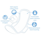 Pad: Certified Organic Cotton, Ecologically Certified Cellulose Pulp, Plant Starch