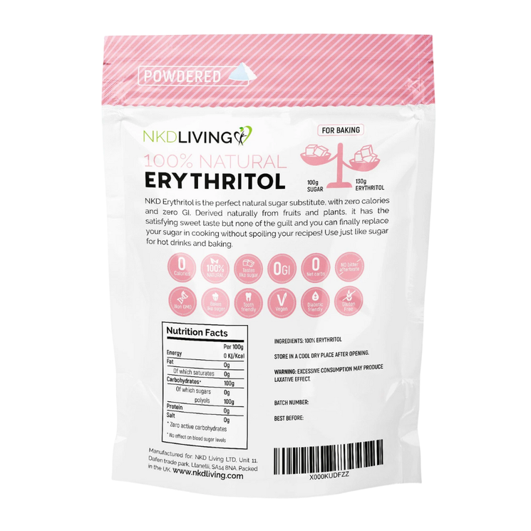 NKD Living Powdered Erythritol is a finely milled, natural sugar alternative with zero calories and no effect on blood sugar levels. With its soft, powder-like texture, it’s perfect for icing, frosting, desserts, or recipes where a smoother blend is required.
