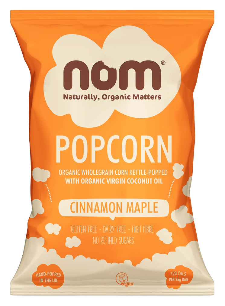 nom organic cinnamon maple popcorn 25g