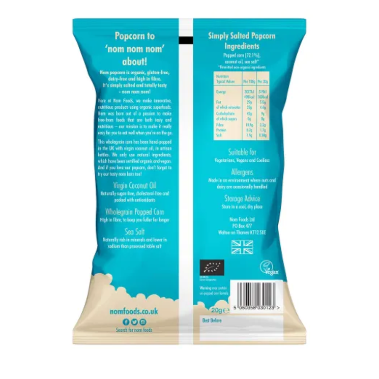 nom organic simply salted popcorn 20g