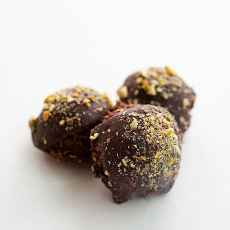 These Mint Pistachio Macaroons combine cool peppermint with smooth raw cacao to create a luxurious, melt in the mouth treat. Raw extra virgin coconut oil and coconut form the soft, moist base, while real maple syrup adds natural sweetness. Each macaroon is finished with pistachio pieces for flavour, texture and a touch of elegance. Crafted from simple, wholefood ingredients, these macaroons are ideal for after dinner moments, gifting or pairing with coffee. Their rich cacao profile and refreshing mint make them a standout alternative to conventional chocolate treats.