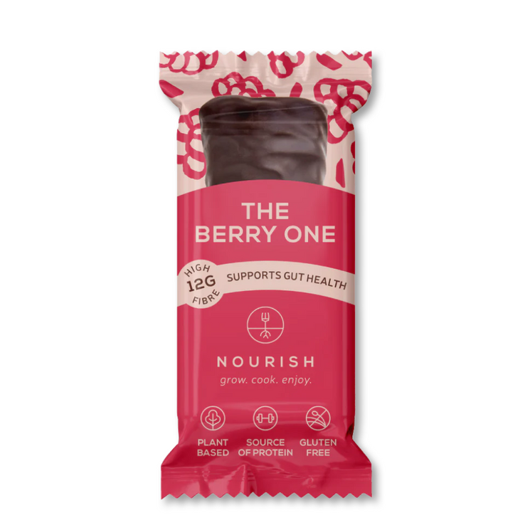 Nourish The Berry One brings together indulgent dark chocolate and coconut with creamy cashews and tangy air dried raspberries. With its balance of rich, sweet and tart notes, this bar is both satisfying and refreshing.