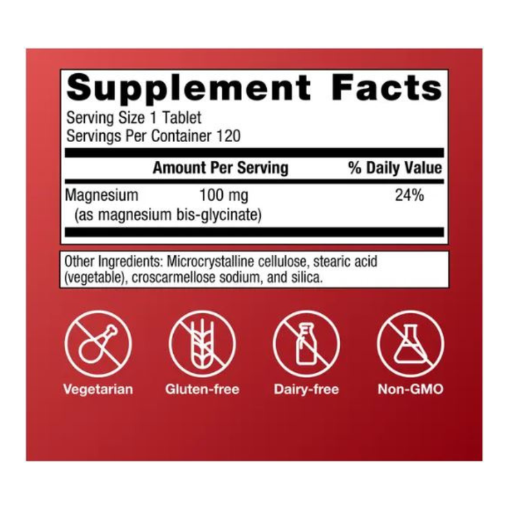 Provides 100mg magnesium per tablet in a gentle, bioavailable bis-glycinate form