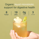Ingredients: Water, Molasses*, Cold-pressed ginger juice* (0.8%), Herb extract blend* (0.5%) (Aniseed*, Fennel seed*, Liquorice root*, Angelica root*, Basil*, Camomile*, Chervil*, Dill*, Elderflower*, Fenugreek seed*, Ginger*, Juniper berry*, Nettle*, Oregano*, Parsley*, Peppermint*, Rosemary*, Sage*, Thyme*), Acerola berry powder* (0.3%), Bifidobacterium lactis, Bifidobacterium longum, Lactobacillus acidophilus, Lactobacillus