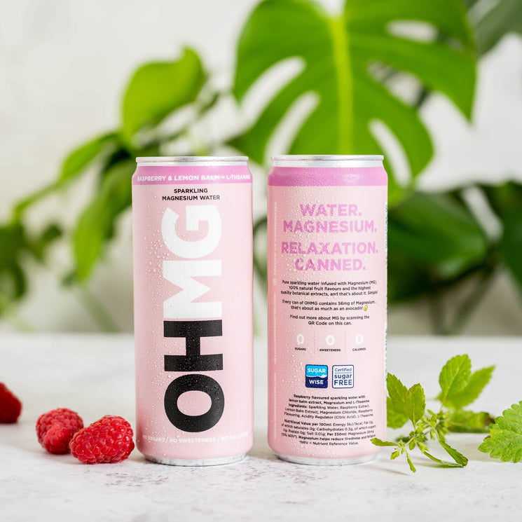 Ingredients: Sparkling Water, Raspberry Extract, Lemon Balm Extract, TripleMg® (Magnesium Citrate, Threonate, Glycinate), Raspberry Flavouring, Acidity Regulator (Citric Acid)