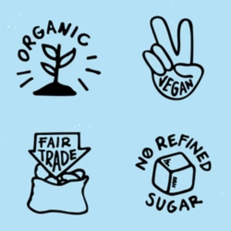 Certified organic, Fairtrade, vegan, and dairy free