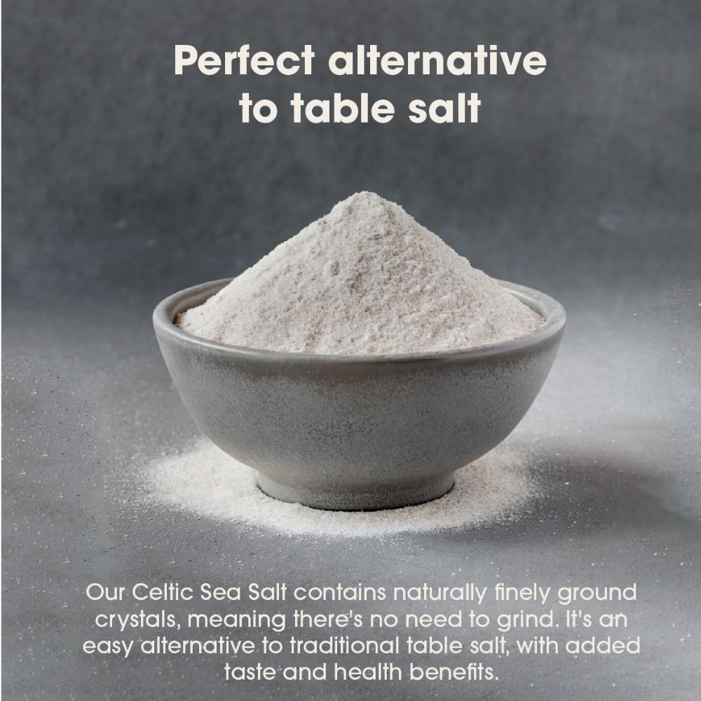 Organic Approved Celtic Sea Salt Ultra Fine is a mineral rich salt that’s as pure as nature intended. Harvested by hand from the French coastline, it’s dried using sun and wind to retain its full spectrum of trace minerals, including magnesium, potassium, calcium, and iron.